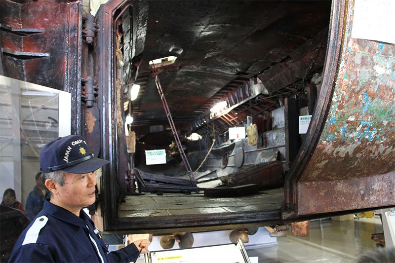 北朝鮮工作船を一般公開:海上保安資料館(横浜)