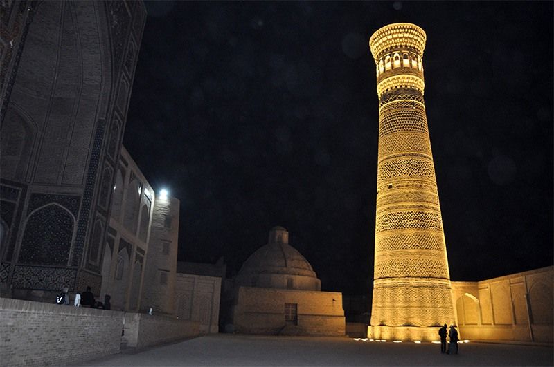ヒヴァに1泊して専用車で大河アムダリアやキジルクム砂漠を車窓から眺めながら、シルクロードの要衝だった古都ブハラに移動した。途中、アヤズ・カラ遺跡などに立ち寄り、ブハラまでは11時間近くかかった。ブハラには2泊、12世紀に造られたカラーン・ミナレット(光塔)や中央アジアに現存する最古のイスラム建築物、イスマイル・サマニ廟などを見て回った。ブハラから、サマルカンドまでは専用車で休憩などを含めると約9時間の道のりだった。