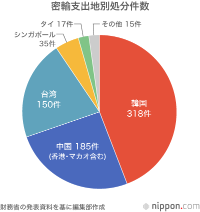 金の密輸事件が急増している。輸入品に対する関税や内国消費税に係る犯則事件の調査(犯則調査)で、2017年7月から18年6月までの1年間の金密輸事件(処分件数)が前年比1.5倍の720件、脱税額が同1.7倍の15億389万円となり、過去最高額を更新した。