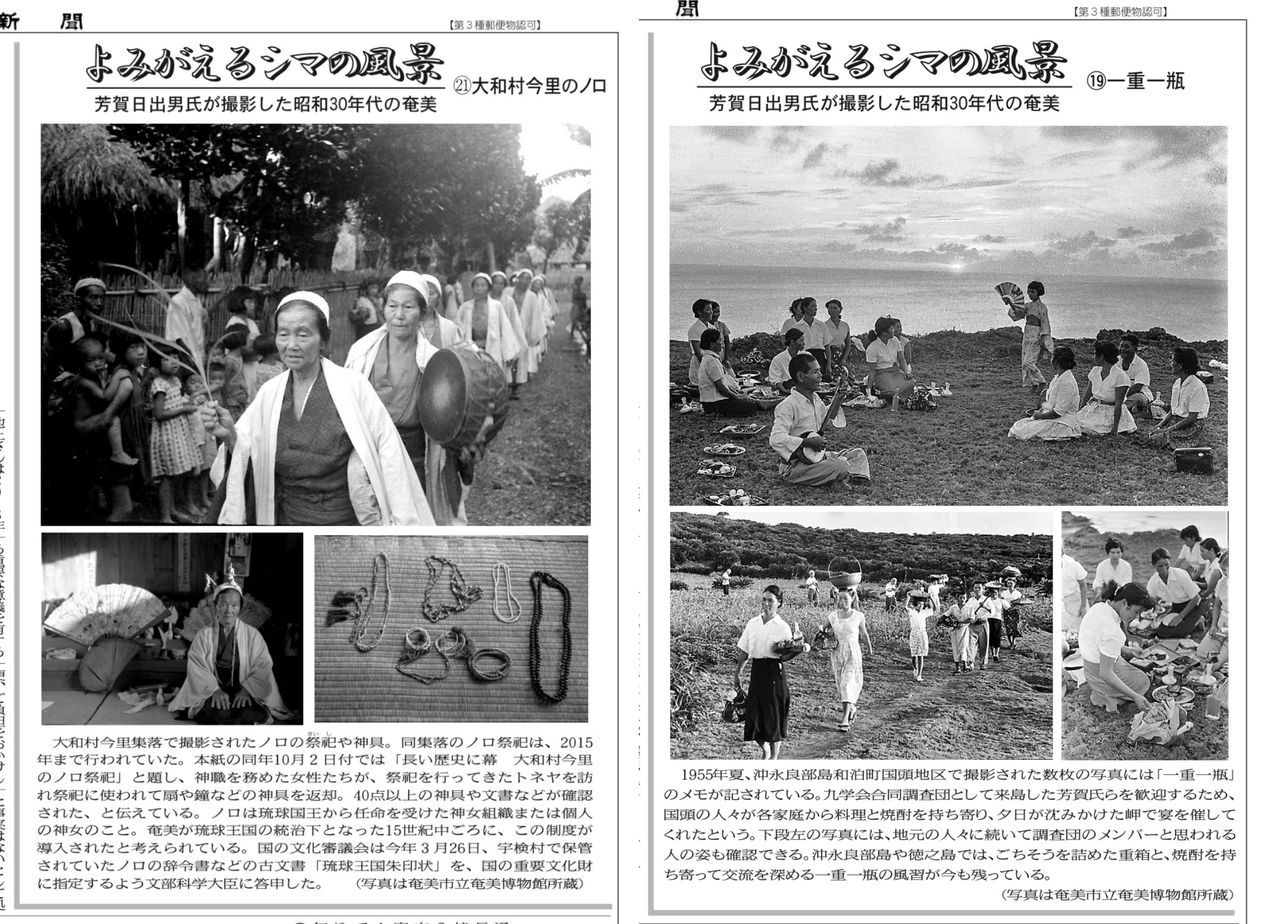 民俗写真家の故・芳賀日出男氏は1955~57年の九学会連合による共同調査で通算182日間、米国統治から日本に復帰して間もない奄美群島に滞在。各島の風習、風俗、信仰、伝統芸能などを500本以上のネガフィルムに収めた。