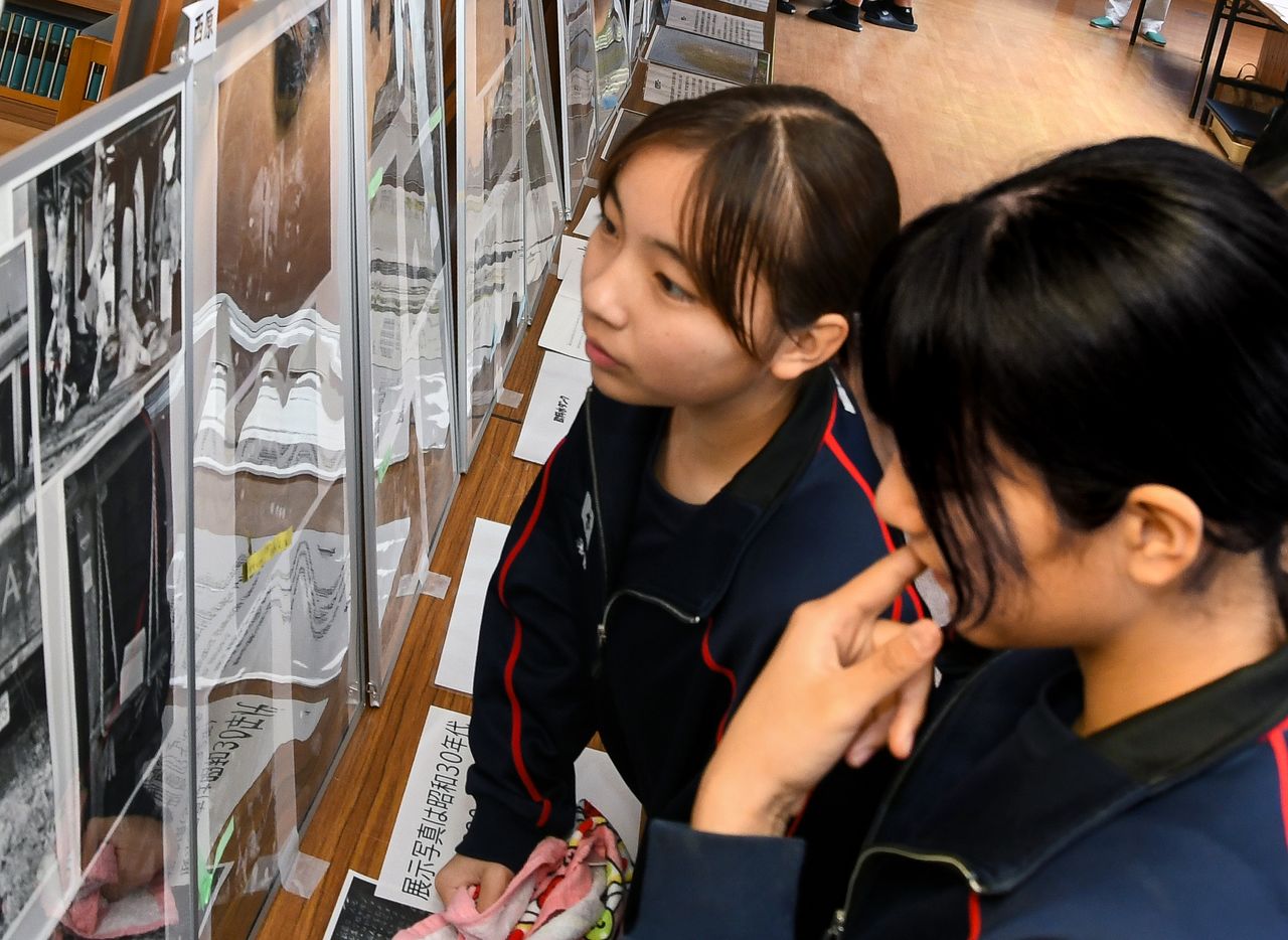 村田さんに話を聞いた中学生の市來夕波(いちき・ゆうは)さん(14)は「昔の学校は給食がなくて、サツマイモをお昼にする子や、外で遊んで空腹を我慢する子もいたという話が印象に残った」と、食糧に不自由しないありがたさをかみしめていた。