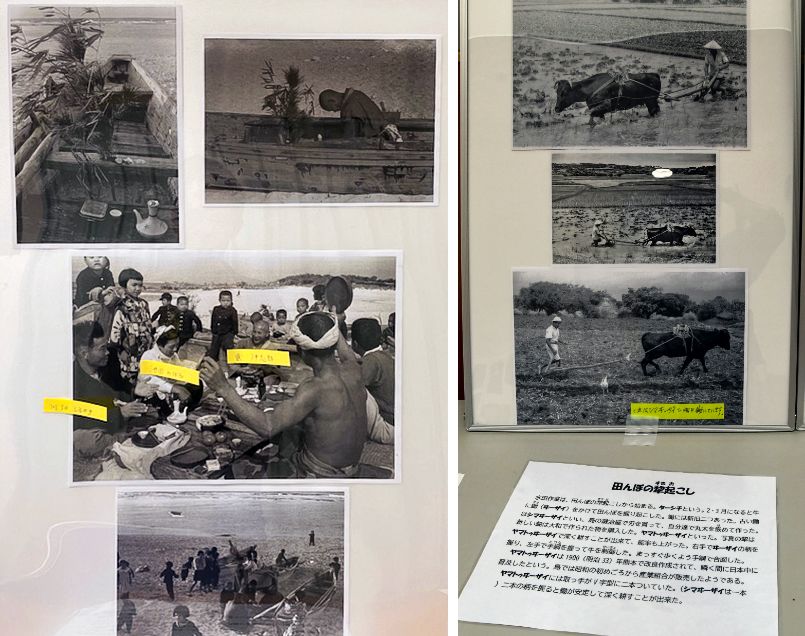 沖永良部では稲作やユタ(民間の霊媒師)の儀式など70年前の民俗がほぼ途絶えており、郷土史家の先田光演さん(83)が中心となって写真に解説文を付けた。「高齢の島民にしか分からないことには詳細を加え、観賞者が雰囲気を想像しやすくした。写っている人たちの話し声や笑い声、周囲のざわめきまでよみがえってくるようでしょう?」という先田さんの言葉通り、来場者は記録の価値を実感していた。
