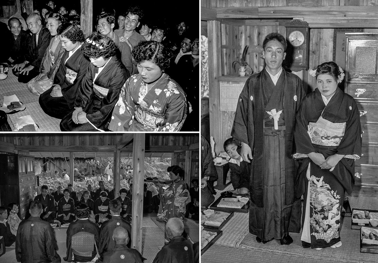 「ヤーミシ」という婚約式(左上)や祝言には大勢の人が集まった(芳賀日出男撮影)