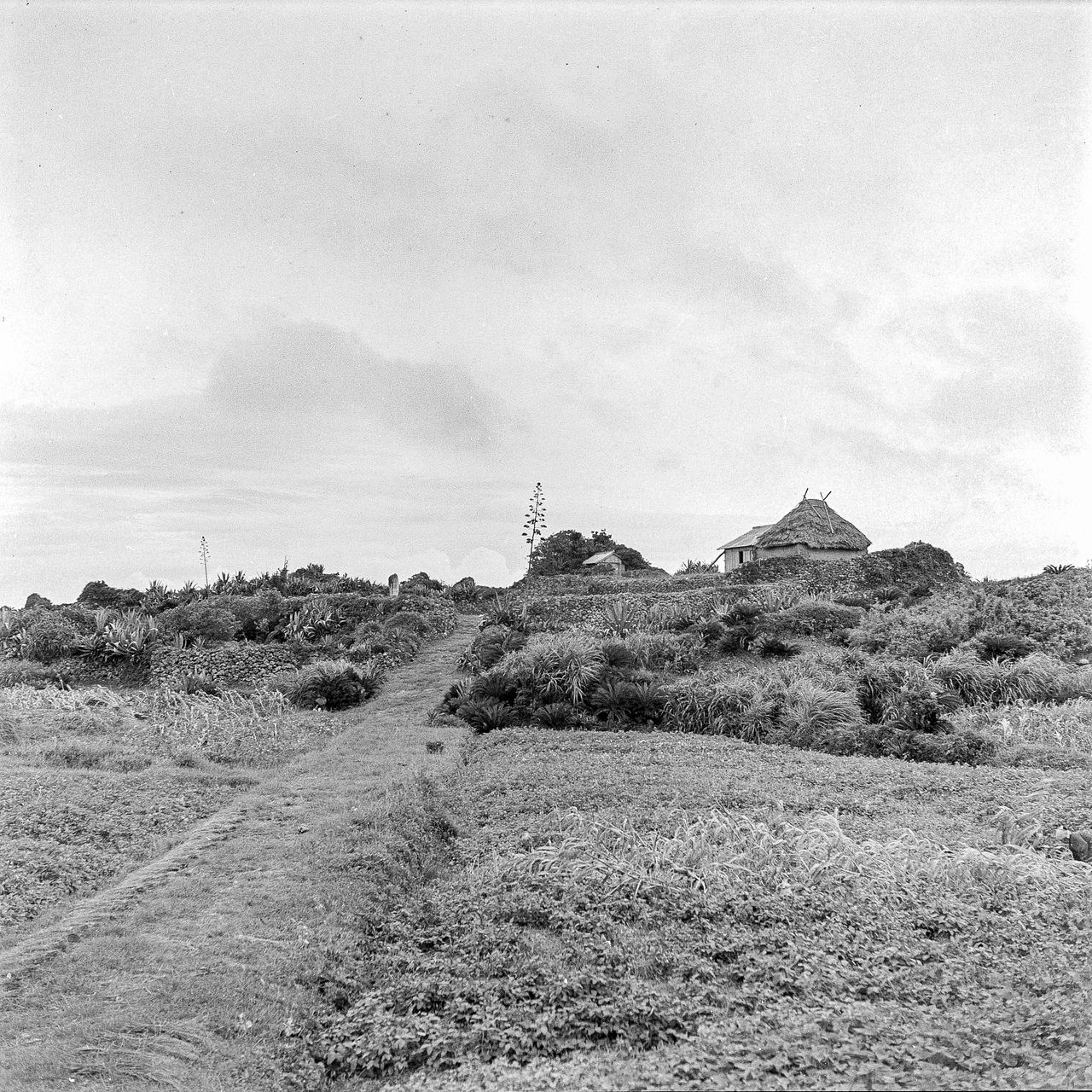 70年前の与論城跡。芳賀氏は九学会の調査のため考古資料なども撮影した(芳賀日出男撮影)