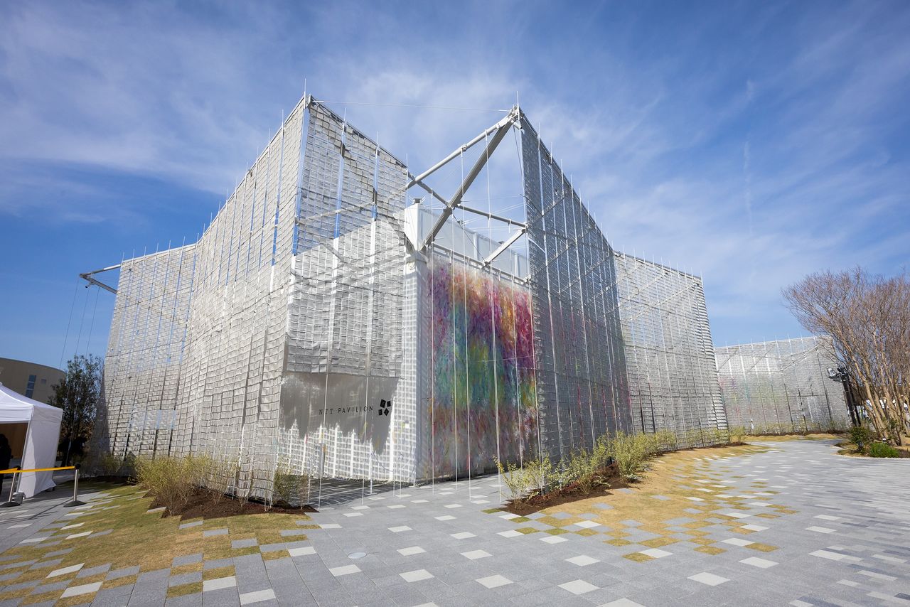 日本最大の通信企業・NTTが出展するのは「時空を旅するパビリオン」。建物を覆う糸のような幕は、風によって揺らめくだけでなく、来場者の笑顔を人工知能(AI)が分析すると人工的に揺らされる。つまり、来場者の盛り上がりが外観に反映する設計だ。