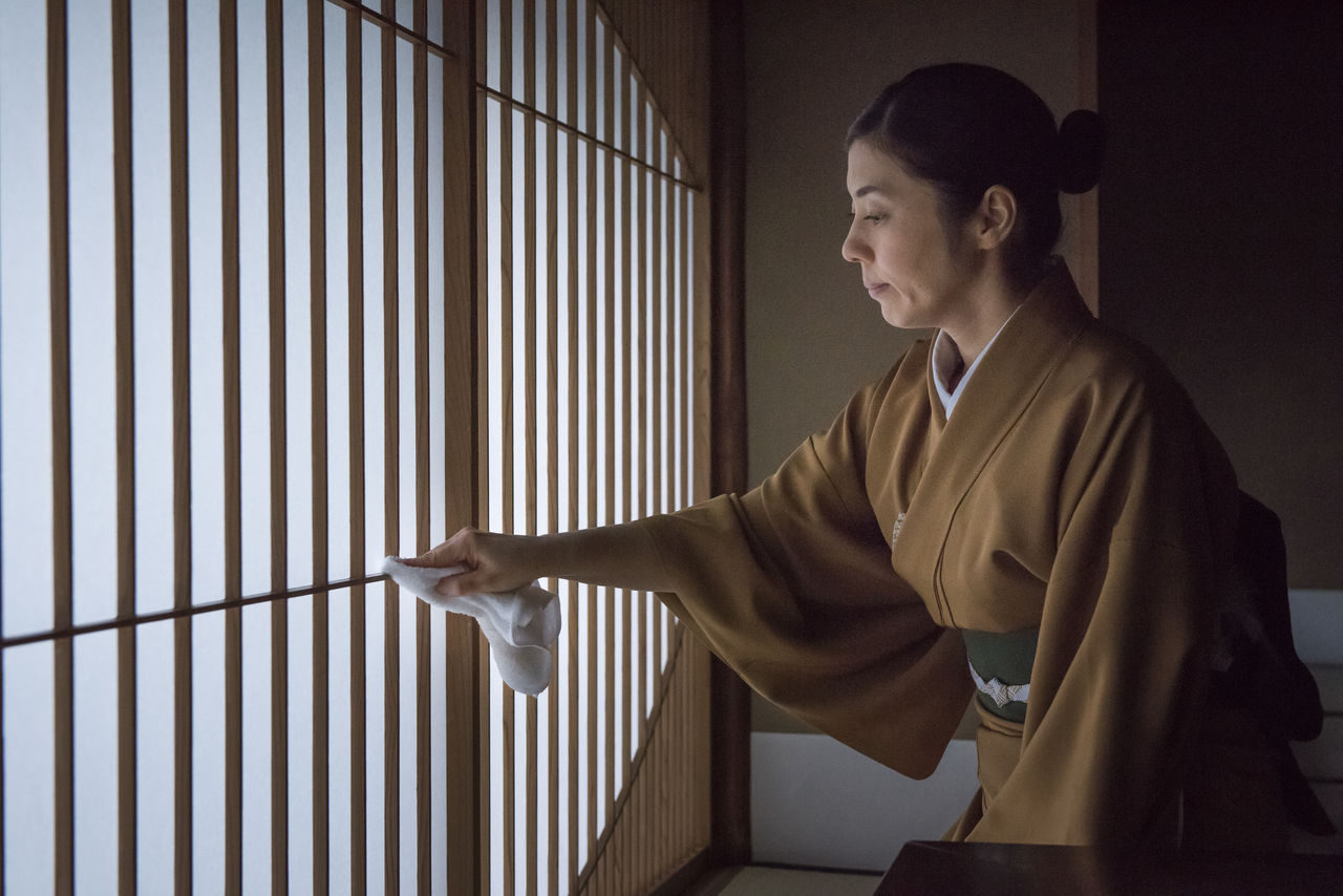 料亭の凛とした空気は、従業員総出で行う朝の掃除の時間から始まる