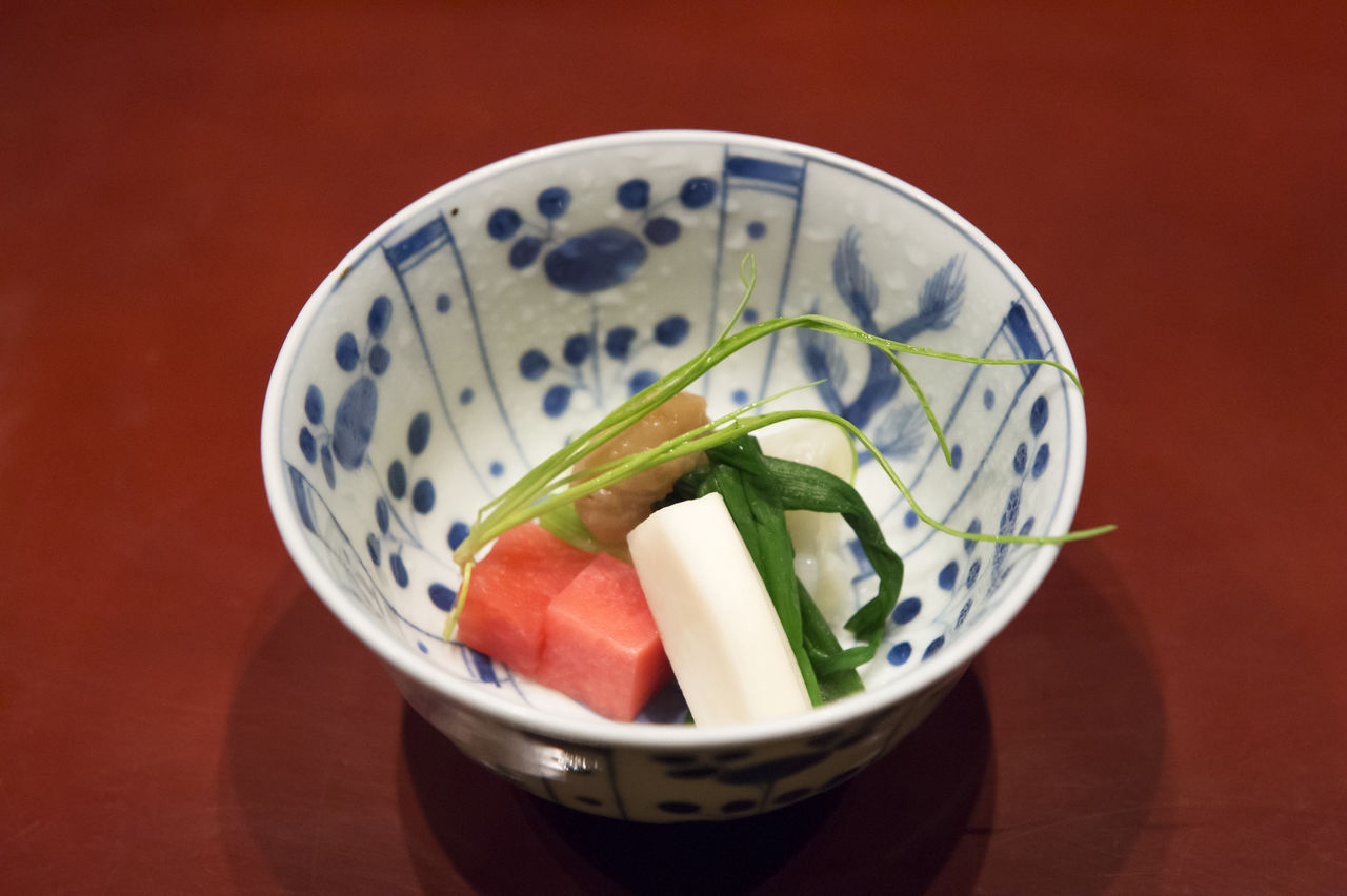 中谷の料理は日本料理の基本を守りながら、小手先の技や料理人の自己主張に陥らず、あくまでも地場産の素材や保存食を主役に立てる。