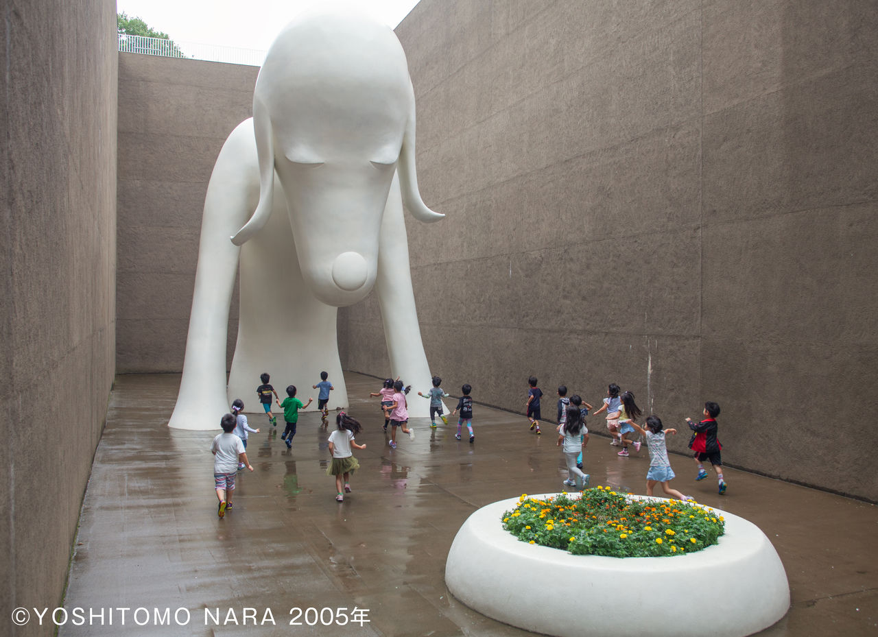 屋外に展示された美術家・奈良美智の高さ8.5メートルの立体作品「あおもり犬」(写真提供:青森県立美術館)