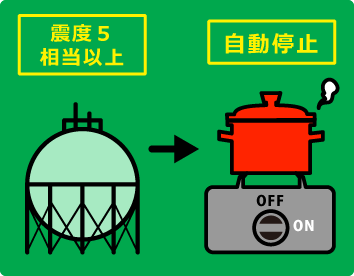 都市ガスは大きな揺れで自動的に止まるようになっていますので、地震の揺れがおさまってから確認しに行くようにしましょう。