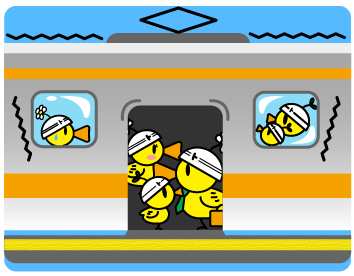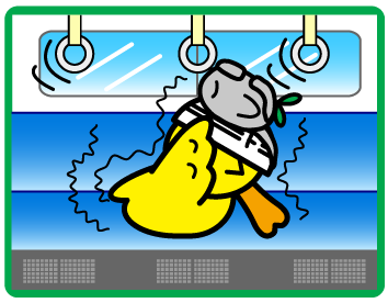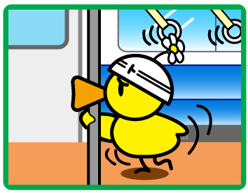 座っている場合は、荷物をしっかり持ち、立っている場合は、つり革や手すりにしっかりとつかまってください。