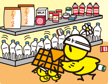 まず棚から離れて、落ちてくる商品から頭を守りましょう。1番危険なのは、スーパーやコンビニの大きなガラス付近ですので、近くに行かないようにしましょう。