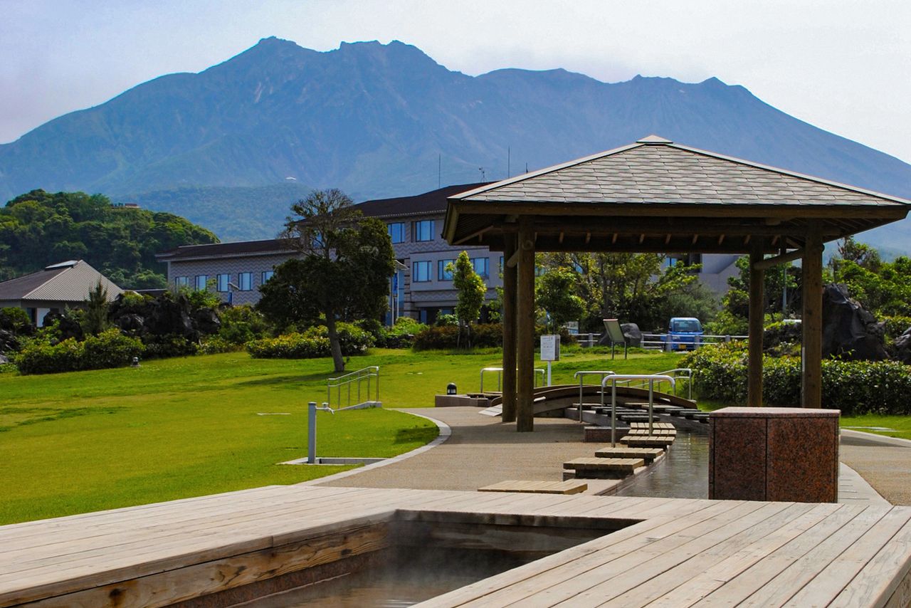 足湯に入りながら、ゆっくりと桜島が眺められる溶岩なぎさ公園 © K.P.V.B