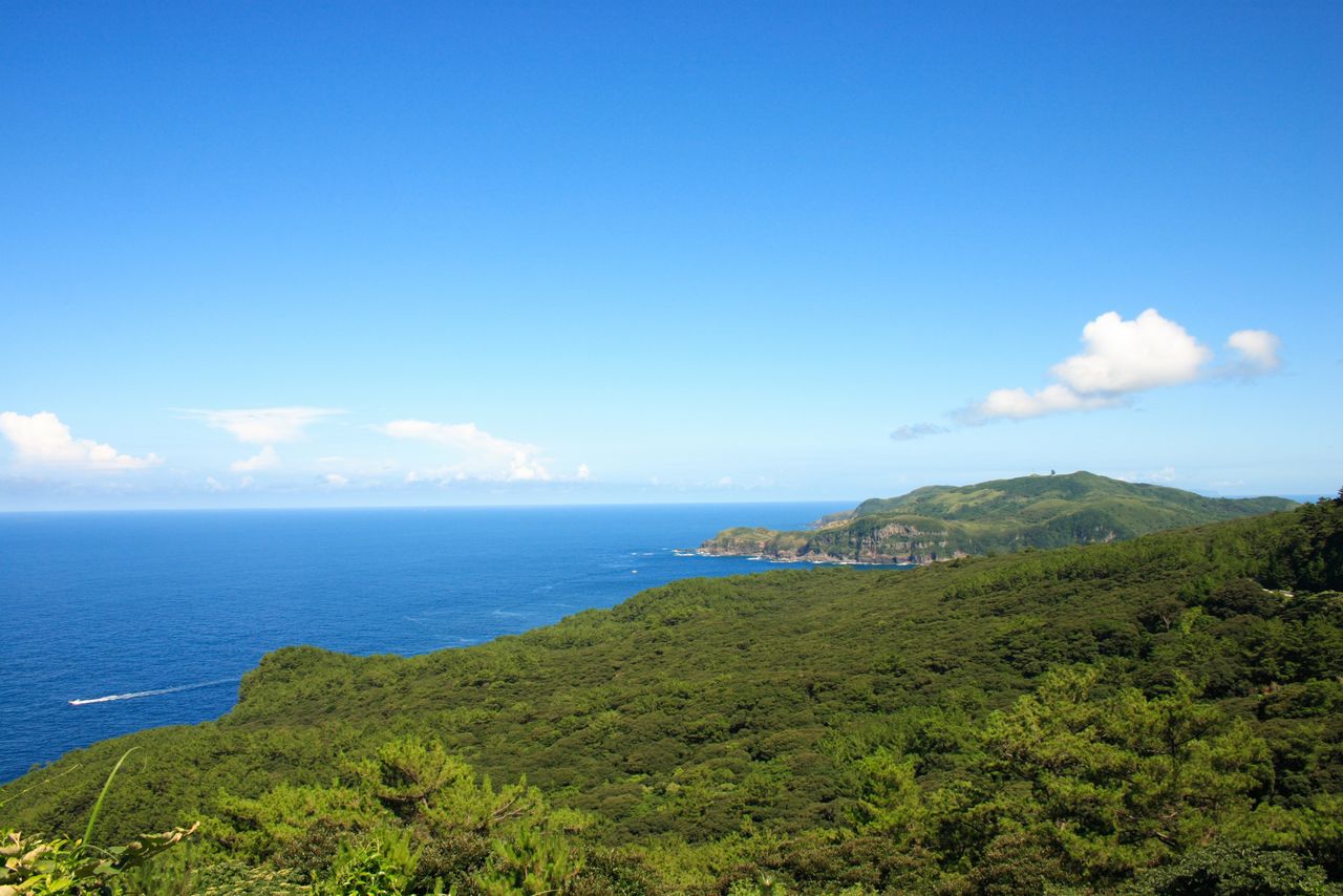 古岳の西麓から、照葉樹林の奥に島西部の番屋ヶ峰を眺める 写真:PIXTA