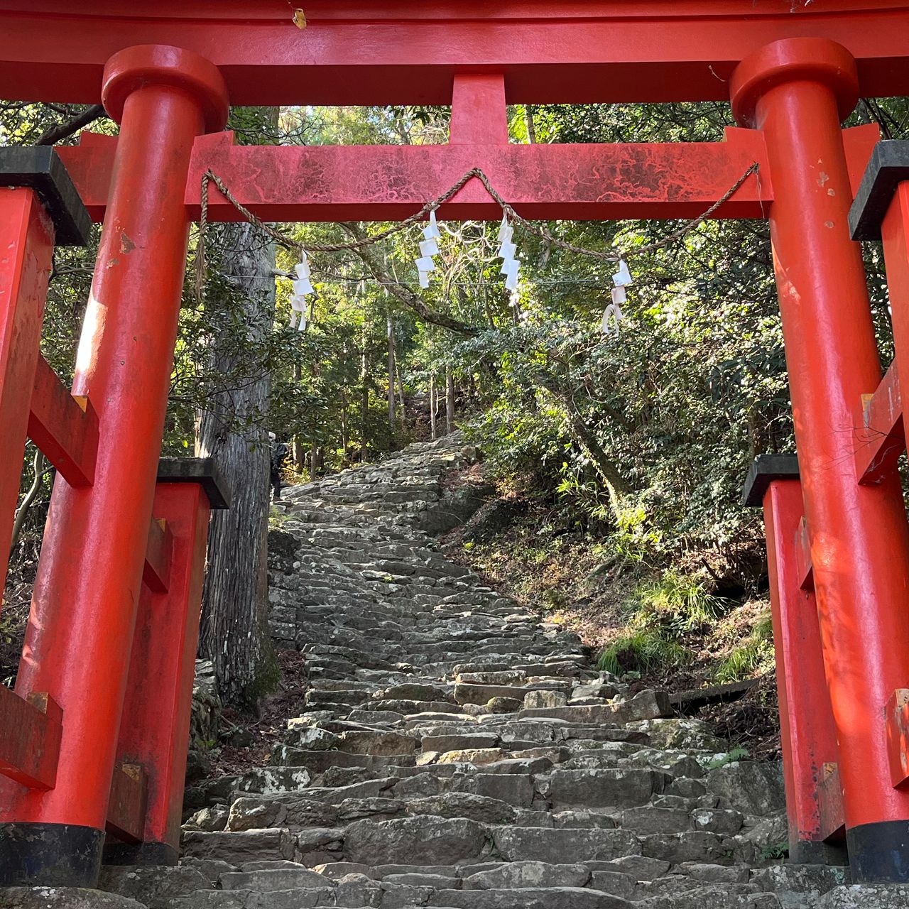 和歌山県新宮市にある神倉(かみくら)神社は、権現山(神倉山)中腹の天磐盾(あまのいわたて)という崖の上にある。御神体は「ゴトビキ岩」で、熊野本宮大社、熊野速玉大社、熊野那智大社に祀(まつ)られる神々が最初に降臨した磐座と伝わり、三山の創建以前から聖地だった。神武天皇は天の神の遣いである八咫烏(やたがらす)に導かれ、大和への道中で天磐盾を登ったという。熊野三山の聖地巡礼路は、ユネスコの世界文化遺産「紀伊山地の霊場と参詣道」に登録されている。