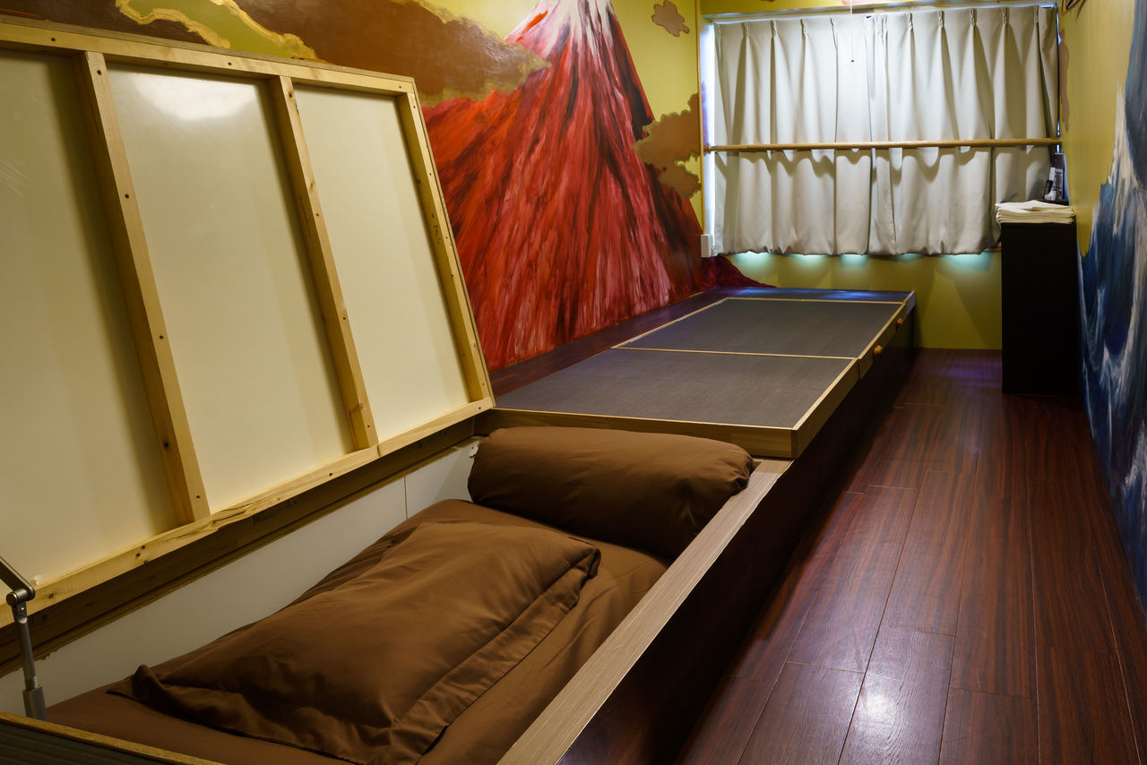 富士山の部屋。布団を収納すれば、小上がりのように使用可能なベッド