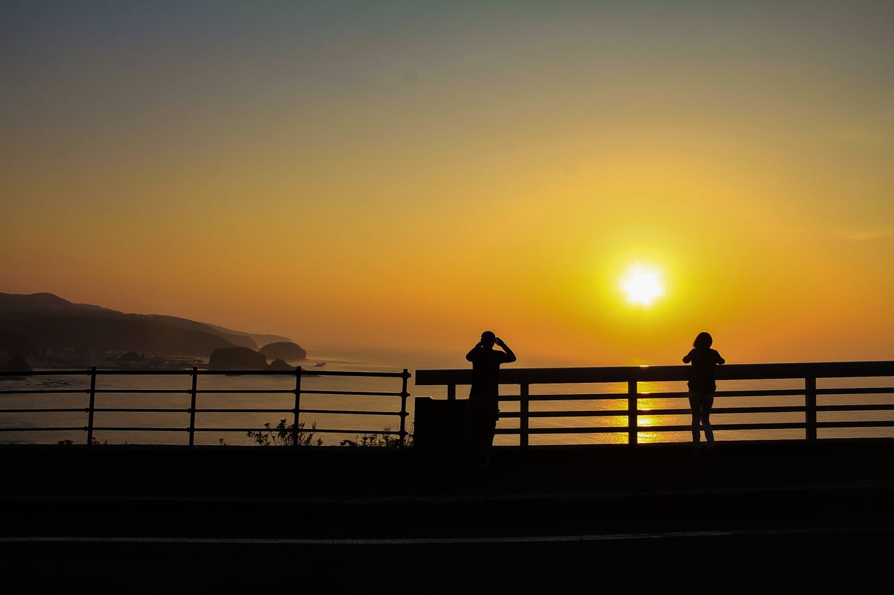 「夕陽台展望台」はウトロ市街を一望することができる高台にあり、日没前になると多くの人が集まる場所だ。沈みゆく夕日で朱色に染まる空と海面はとても美しく感動的だ。