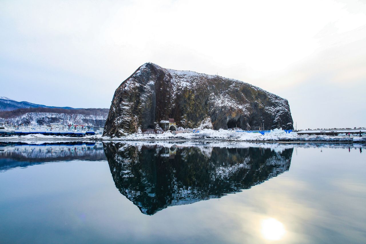 風の弱い日には鏡面反射したオロンコ岩も見られる 写真提供:知床斜里町観光協会