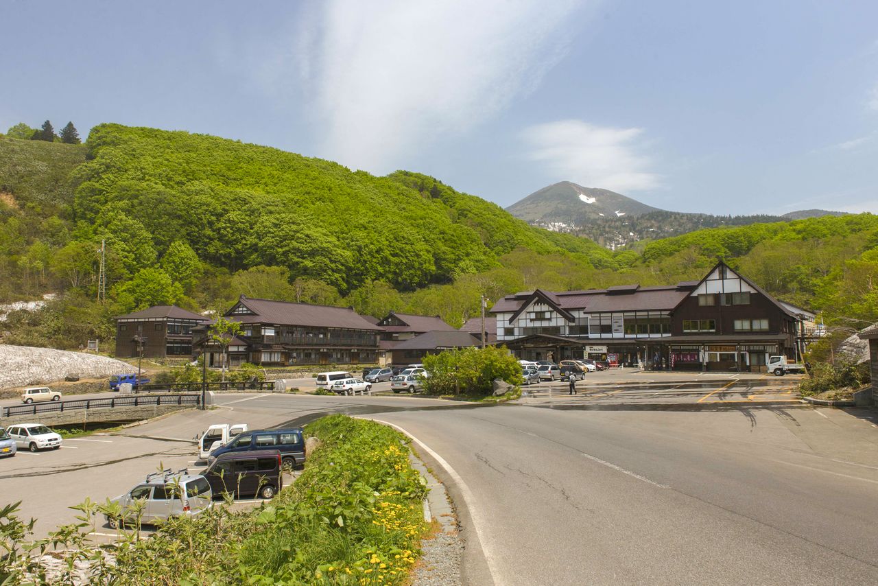 グリーンシーズンの酸ヶ湯温泉。奥には八甲田大岳が見える 写真提供:青森県観光連盟