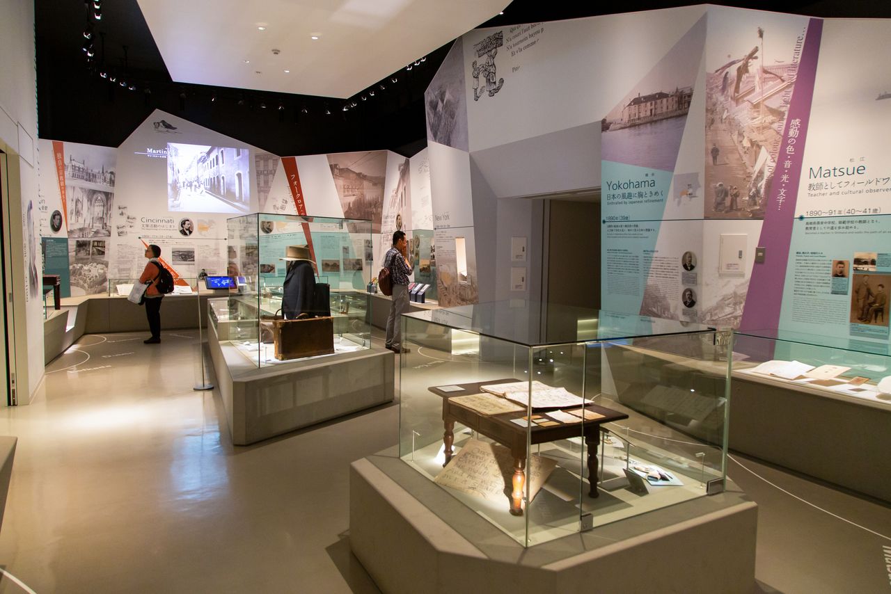 第1展示室は八雲が見聞し、影響を受けたものを中心に展示。ギリシャで生まれアイルランドで育ち、英国や仏国、米国、カリブ海の島に渡り、そして日本で生涯を終えるまでのさすらいの人生を順々に紹介している。第2展示室では八雲の実績や精神世界を「ジャーナリズム」や「教育」などのテーマごとに掘り下げ、第3展示室では期間限定の企画展示を主に開催している。