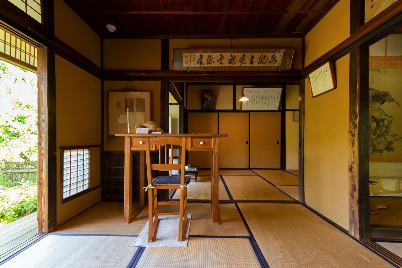 隣の旧居は、武士の生活を体験したいという八雲の希望で移り住んだ屋敷だ。居室に上がると、読書や執筆に取り組んだ書斎が再現されている。