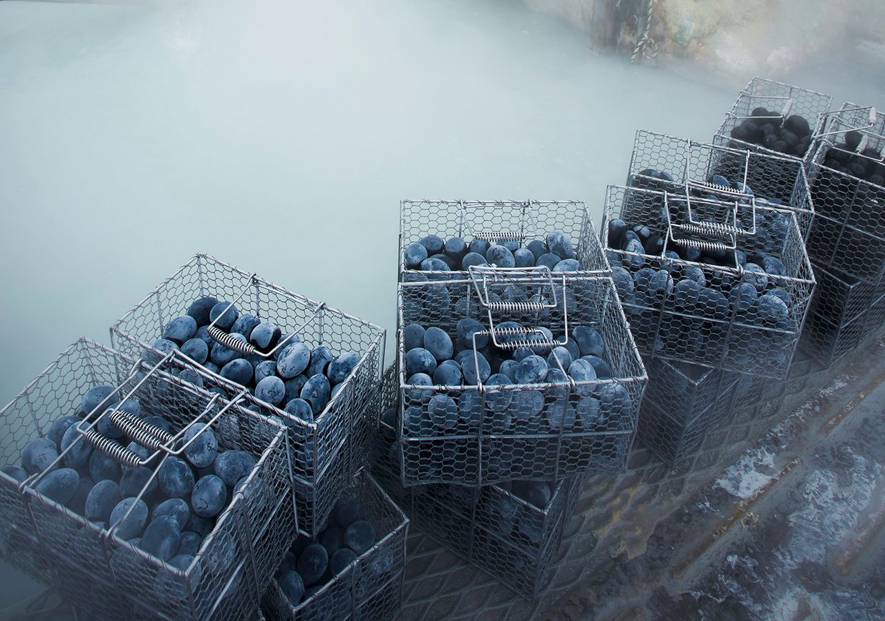 すぐに専用ロープウェイで運び、熱々のまま販売する 写真提供:大涌谷くろたまご館