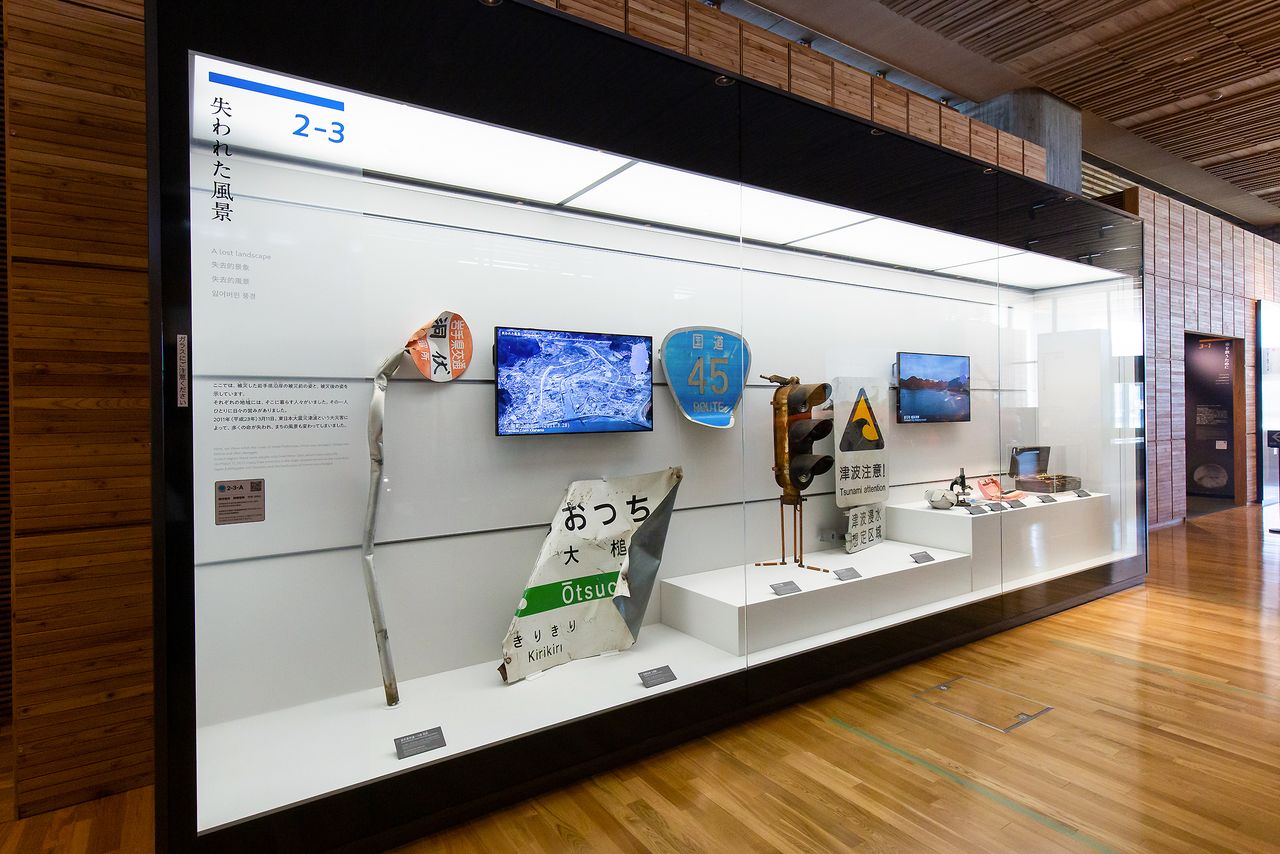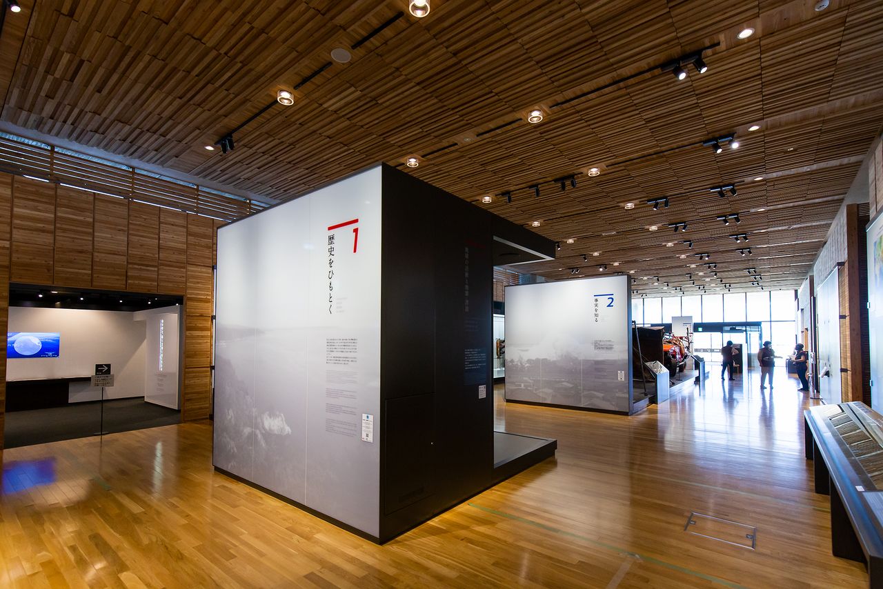 公園のエントランスの役割を果たすのが、「いわてTSUNAMIメモリアル」の愛称を持つ「東日本大震災津波伝承館」だ。発災からの状況を伝える資料約150点を展示するとともに、三陸沿岸で起きた津波の歴史や津波発生のメカニズムなどを詳しく解説し、自然災害の脅威と教訓を広く発信している。