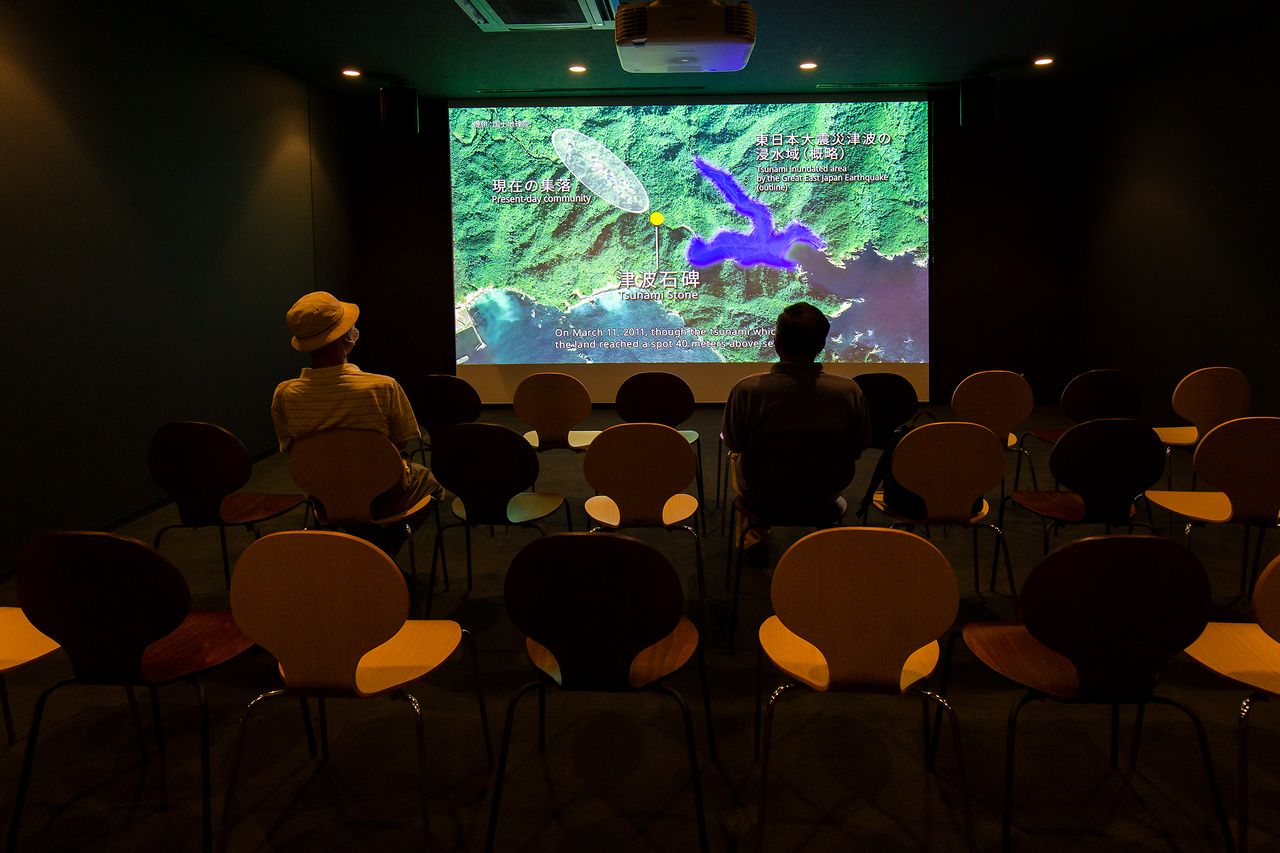 最初のコーナー「歴史をひもとく」では、年表や地層の標本から過去に三陸沖で発生した津波について知ることができる。ガイダンスシアターで上映されるのは、伝承館のテーマである「命を守り、海と大地と共に生きる」をコンセプトにした映像。その中で、「ここより下に家を建てるな」と記された津波石碑の教えを守り、被災を免れた宮古市姉吉集落のことも紹介している。高田松原もその一例だが、三陸沿岸地域には古くから、災害から身を守る知恵や教訓が伝えられてきた。