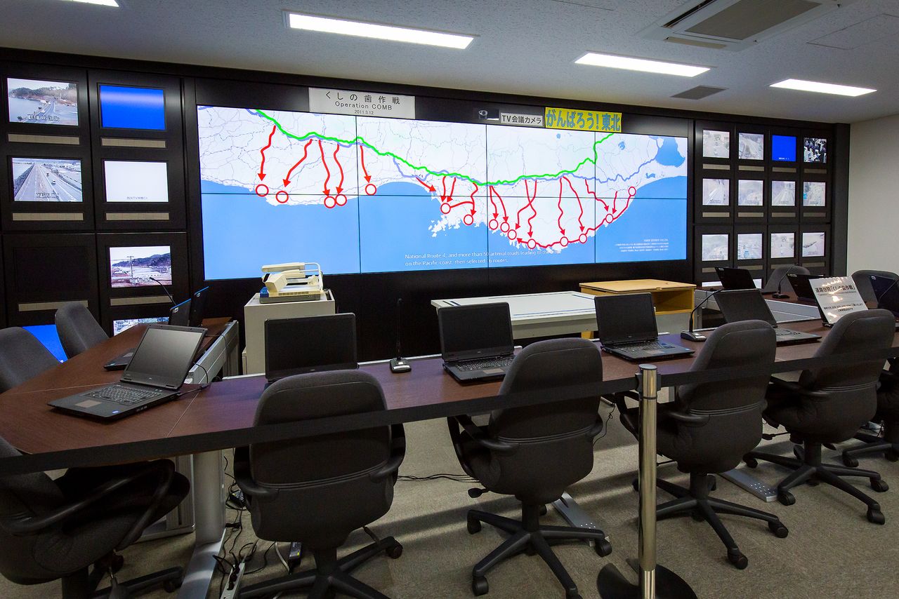 東北自動車道から沿岸部の被災地まで、緊急輸送道路を切り開いた「くしの歯作戦」の指揮室