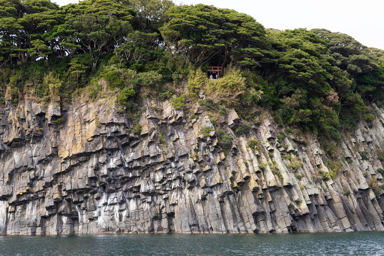 遊覧船は波の穏やかな日には、大池の奥まで入って行くので、巨大な柱状節理を間近に眺められる。