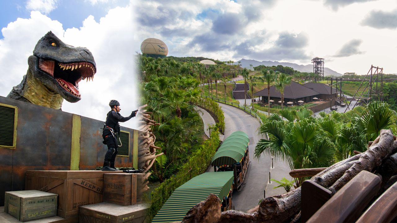 「ジャングル エクストリームズ」エリアは、文字通り“大自然に飛び込む”体験が魅力。7階建てビル相当の24.4メートルのタワーを中心に、自由落下の「グラビティドロップ」、280メートルを滑空する「スカイフェニックス」、落下と滑空の両方を組み合わせた「バンジーグライダー」でジャングルの空を舞うことができる。