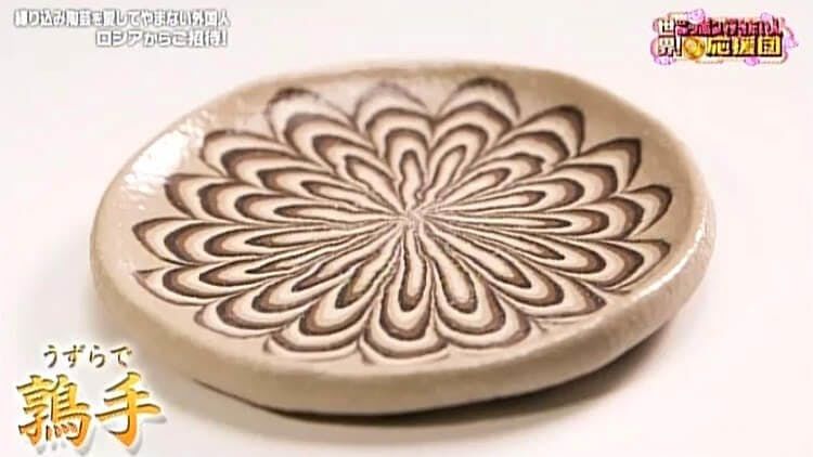 こちらがアレクサンドラさんの作ったお皿。「私のやり方は完全に我流で、最後までどんな模様になるか分かりませんが、本当は自分が意図した通りの模様が作れるはずなんです。ニッポンの練り込み陶芸作家の方から技法を学びたいです」とのことで、そんなアレクサンドラさんをニッポンにご招待!
