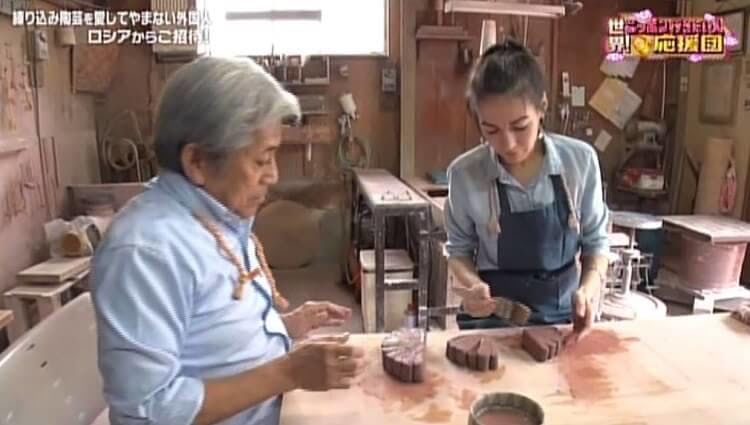 「素晴らしいです。本当に感動しています。一体どうやって作っているのでしょう」とアレクサンドラさん。この後アレクサンドラさんは、独学では分からなかった練り込みの技法を学ぶため、平安時代から1000年以上続く日本有数の焼き物の産地、愛知県瀬戸市に向かいます。彼女の熱意を伝えたところ、練り込み陶芸の第一人者である水野教雄さん(69歳)から、練り込みの技法を教えて頂けることに。