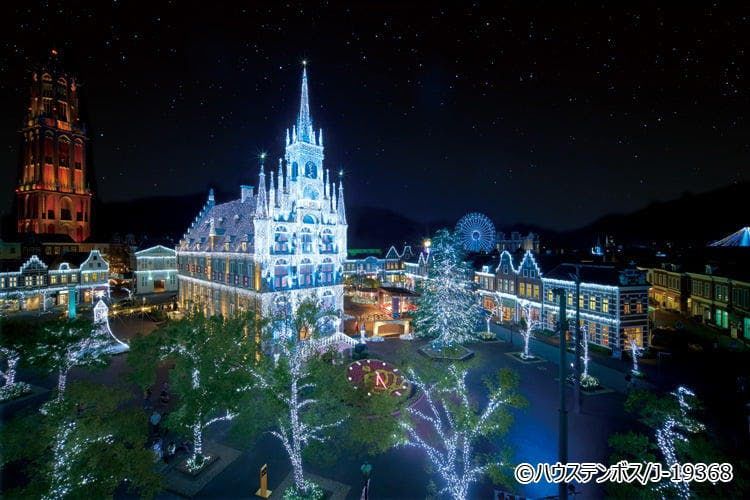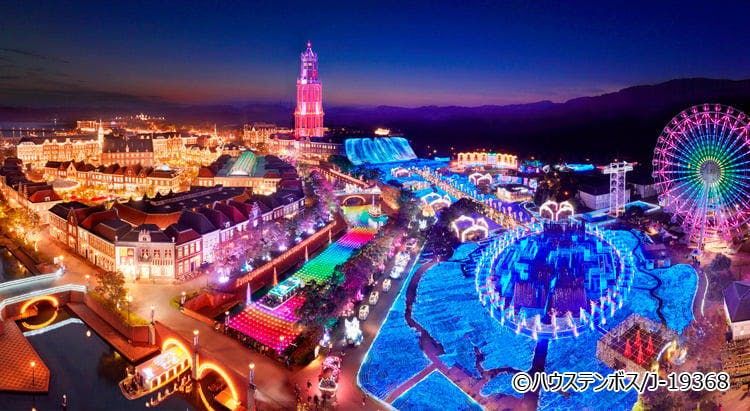 全国イルミネーションランキングで7年連続1位を獲得。1,300万球のイルミネーションにより、場内が幻想的な光輝く街に。今シーズンから登場した、白一色のイルミネーション「白銀の世界」をはじめ、観覧車から場内を一望できる「光の観覧車」、ブルーに染まる「光の滝・ブルーウェーブ」、運河を舞台にしたカラフルでハッピーなショー「光と噴水の運河」など、見どころは尽きない。