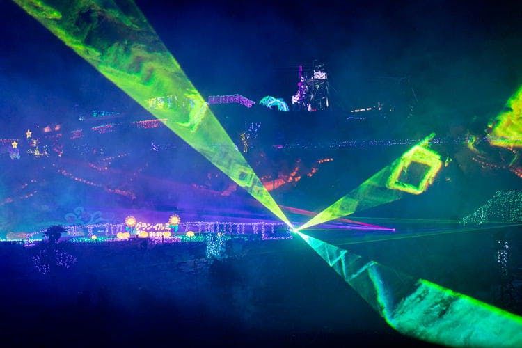 曲に合わせてイルミネーションが踊り出す「光と音のショー」、オーロラが躍動しているかのような幻想的な世界が広がる「フルカラーレーザーショー」、大型LEDビジョンと音のコラボレーション「グランビジョンショー」を、それぞれ10分ごとに開催。イルミネーションの上を滑走するジップライン「流星RYUSEI」も人気。