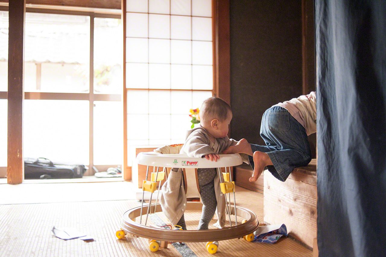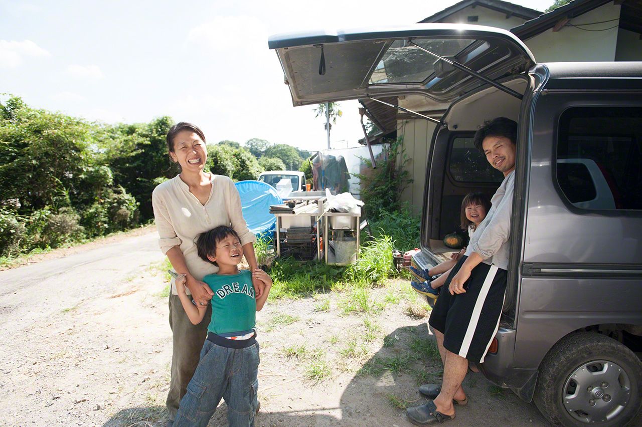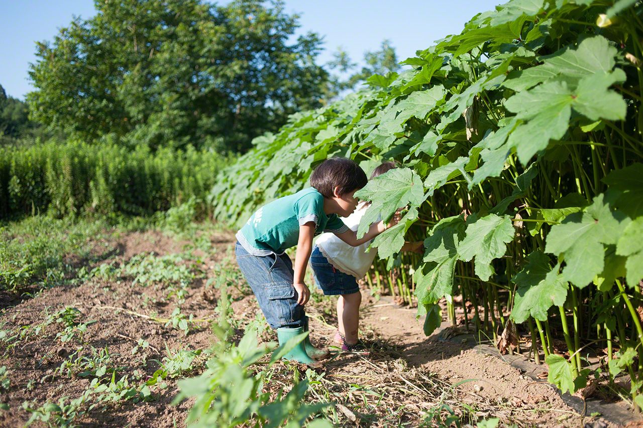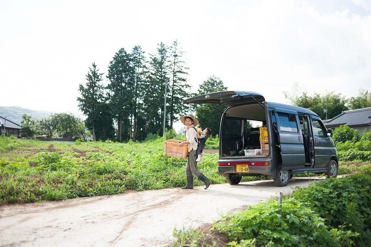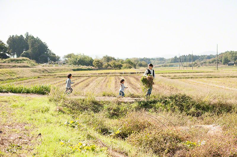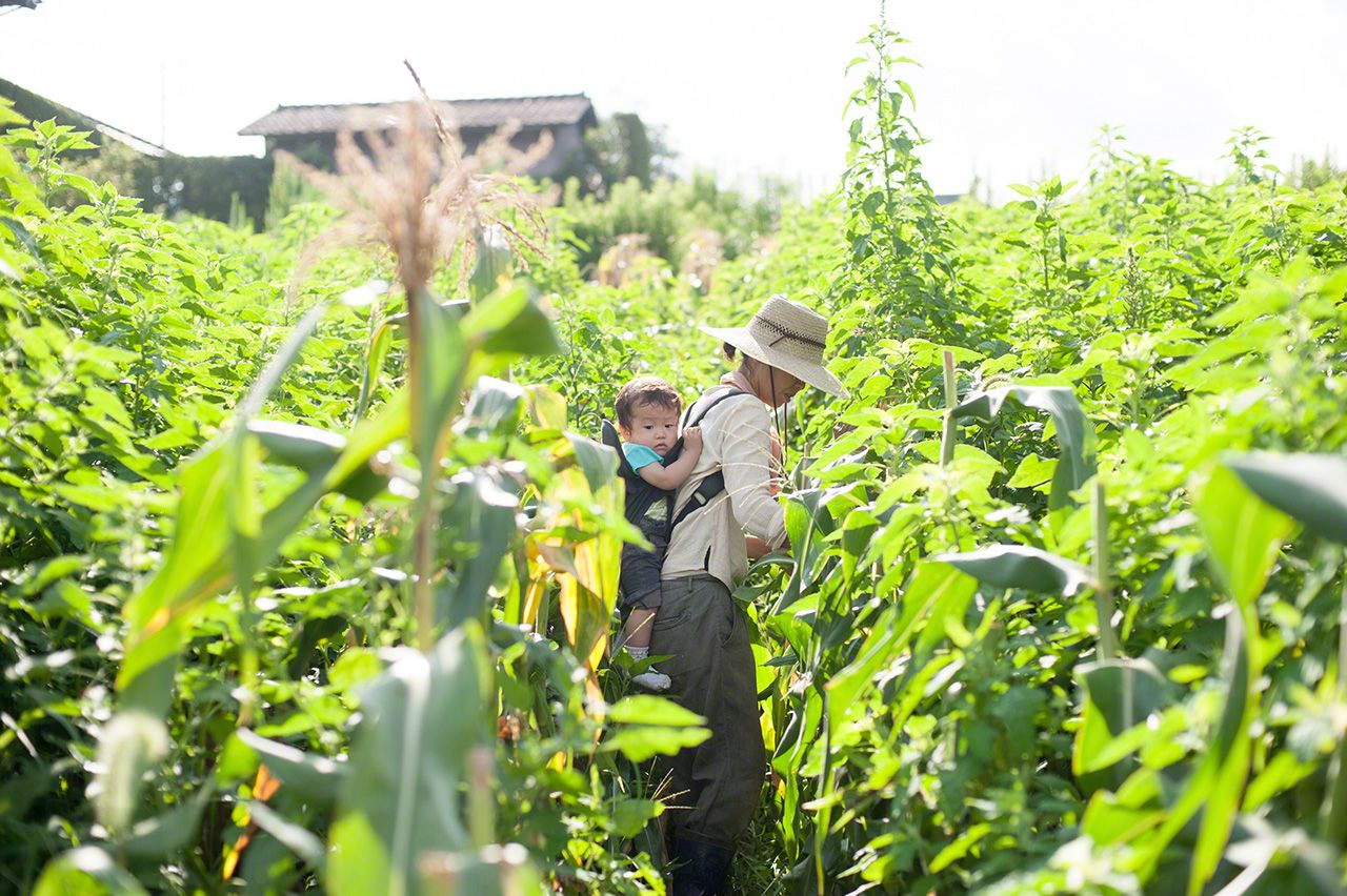 畑へ行ってみると、背中に次男の仁史君を背負いながら、久美子さんが農作業をしていた。大変だなと思いつつも、思わず見とれてしまう。土と緑と久美子さんの流す汗が何とも言えない雰囲気を醸し出している。長男の義介君と長女の彩菜ちゃんも、泥んこまみれになりながら、彼女のそばで野菜づくりの手伝いをしている。東京では絶対に見かけない光景だ。ここでは、都会の学校では学べないことを畑から教えてもらっているに違いない。彼らの屈託のない穏やかな表情を目の当たりにして、思わず頰が緩んでしまう。
