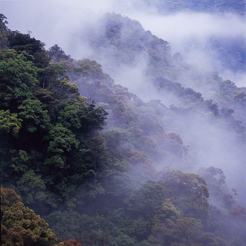 霧の照葉樹林。雨上がりや気温の上昇などの気象条件の変化で、照葉樹林が霧に包まれる日がある