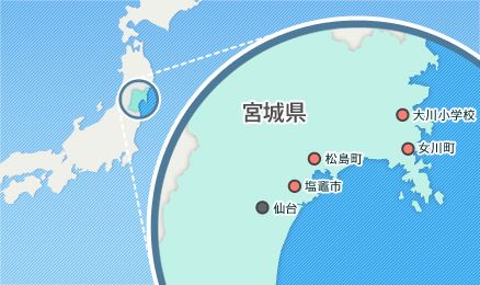 女川町を出発し、同町から30キロ西に位置する日本三景の一つ、名勝松島海岸がある松島町に向かった。死者・行方不明者は16人で、数百、数千人の犠牲者が出た周囲の自治体と比べると少ない。観光名所の風光明媚な島や半島が津波の力を遮るようにして弱めたことや、松島湾内の平均水深が3.5メートルと浅かったことなどが理由として挙げられている。