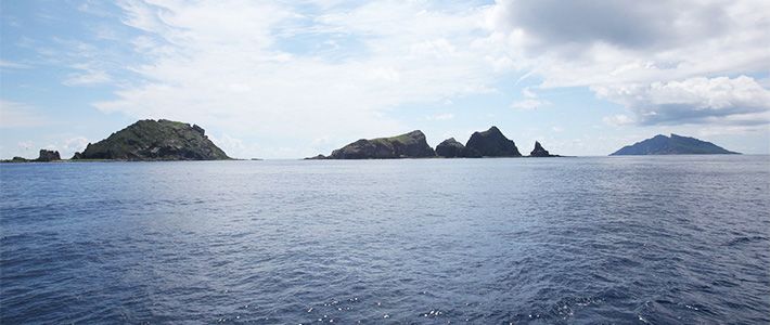 タイトル写真=沖縄県石垣市の尖閣諸島。右から魚釣島、北小島、南小島/ 時事