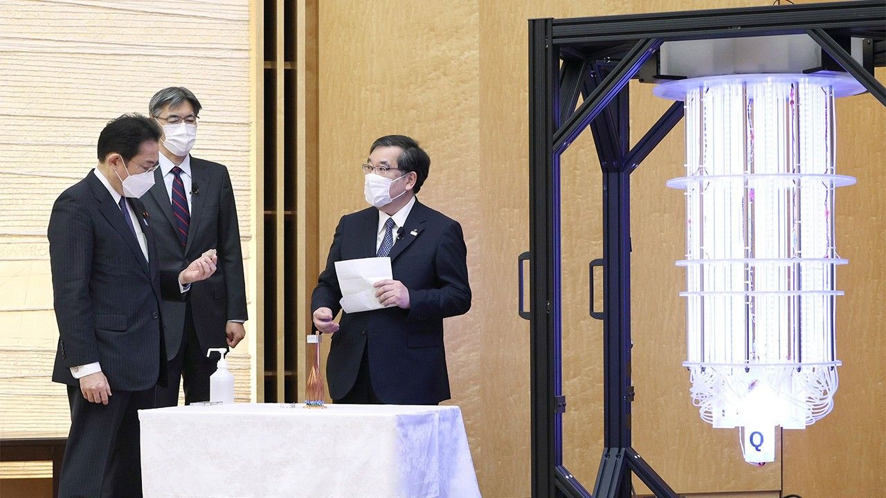 バナー写真:総合科学技術・イノベーション会議で、模型を前に量子コンピューターの説明を受ける岸田文雄首相(左端)=2022年6月2日、首相官邸(時事)