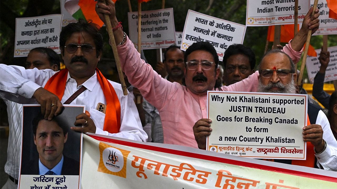 バナー写真:インドのニューデリーで、トルドー・カナダ首相に抗議して街頭デモを繰り広げるヒンドゥー教徒の活動家=2023年9月24日(AFP=時事)