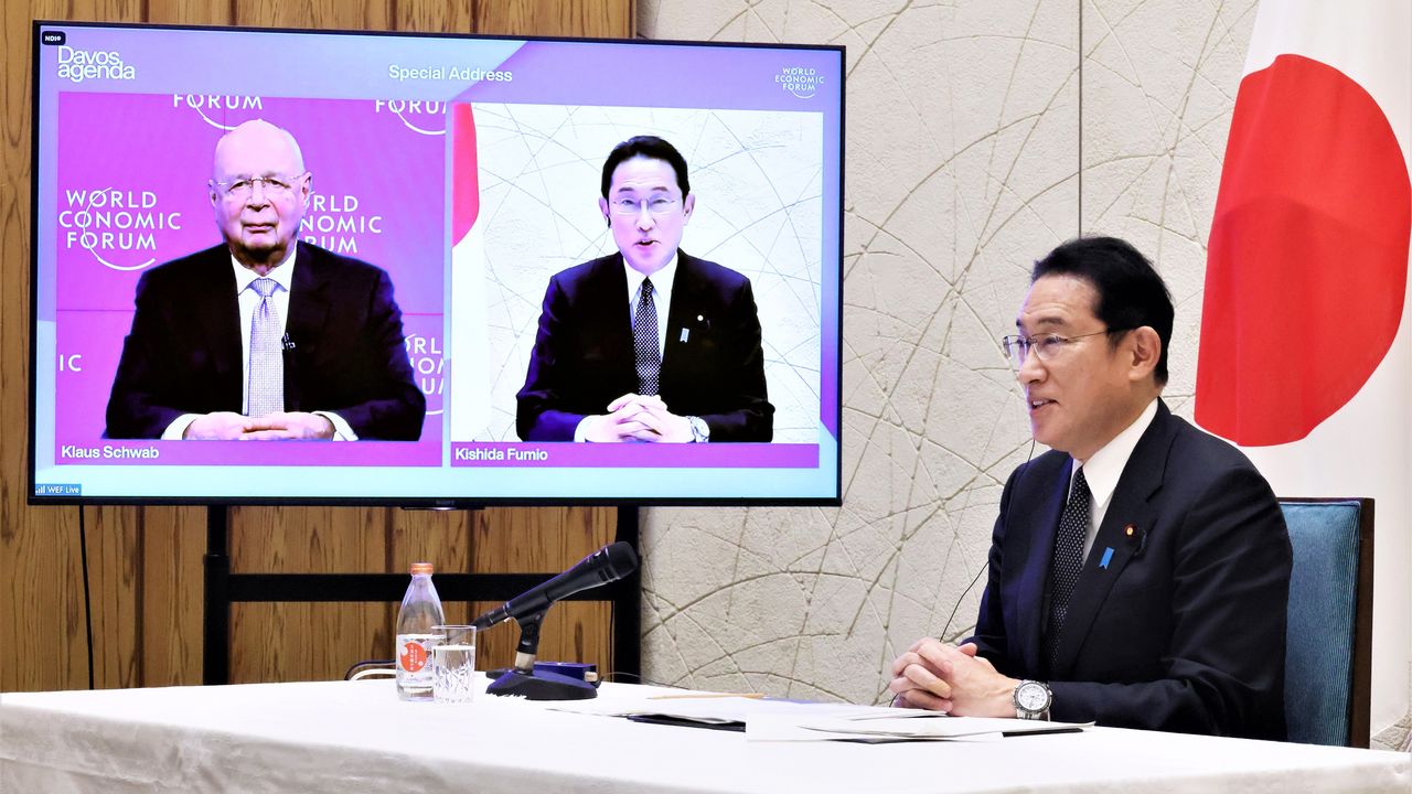 バナー写真:世界経済フォーラム年次総会(ダボス会議)関連のオンライン会合で講演し、「『新しい資本主義』によって世界の流れをリードする」と表明した岸田文雄首相=2022年1月18日午後、首相官邸 [内閣広報室提供]時事