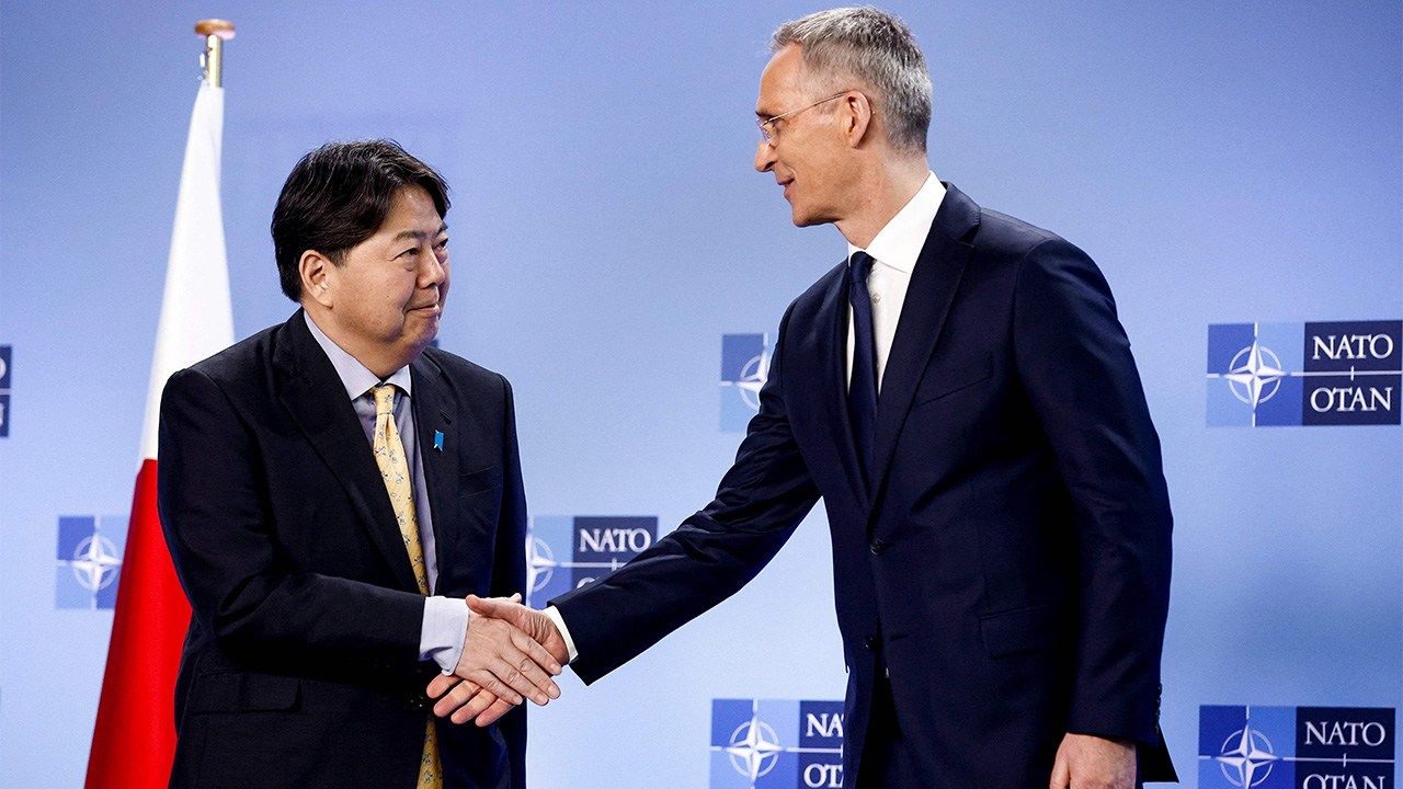 バナー写真:北大西洋条約機構(NATO)の外相会合に出席し、記者会見する林芳正外相(左)とストルテンベルグNATO事務総長=2023年4月4日(AFP=時事)