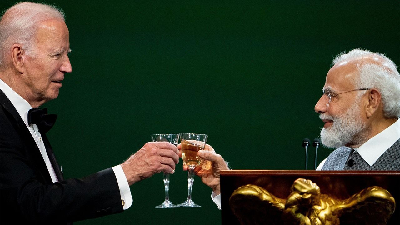 バナー写真:ホワイトハウスでの公式晩餐会で乾杯するバイデン米大統領(左)とインドのモディ首相=2023年6月22日(AFP=時事)