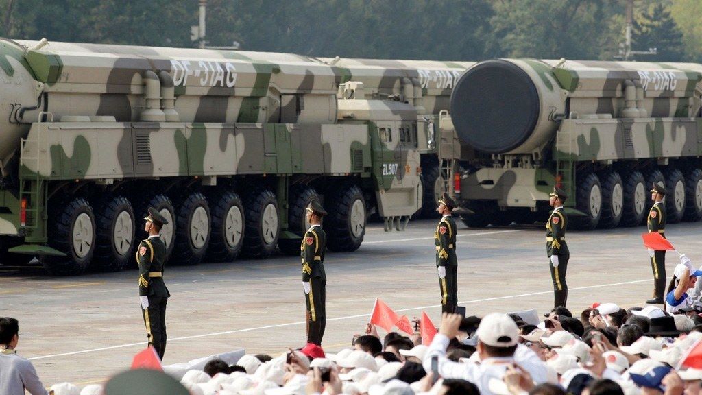 バナー写真:軍事パレードで中国・北京の天安門広場を進む大陸間弾道ミサイル=2019年10月(ロイター=共同)