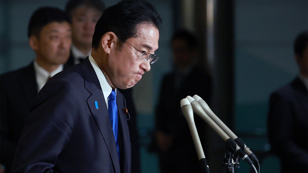 バナー写真:記者団の取材に応じた後、一礼する岸田文雄首相。この日、松野博一官房長官ら4閣僚が辞任した=2023年12月14日、首相官邸(時事)
