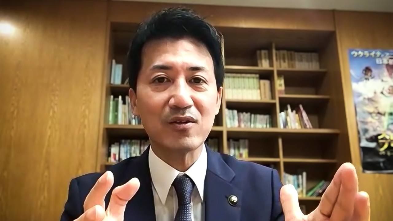 バナー写真:兵庫県知事選について語る越田・川西市長(オンライン取材時にニッポンドットコム編集部撮影)