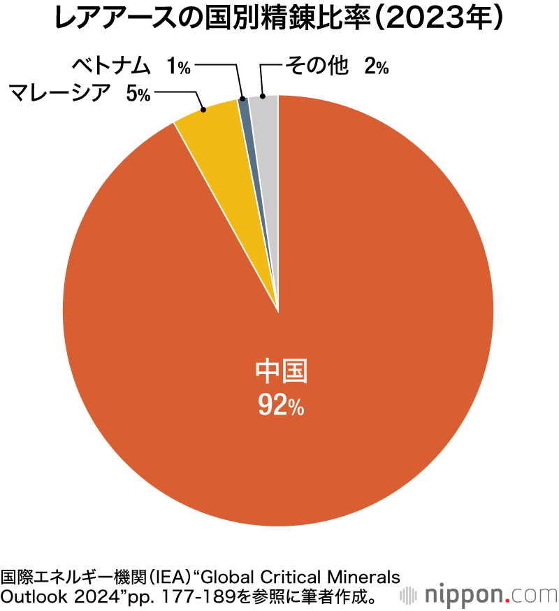 (※9) ^ 日本企業では、信越化学工業や三井金属などが1960年代からレアアース精錬を手掛け、高い技術力を有する。それぞれのウェブページ参照。信越化学工業:https://www.rare-earth.jp/technology.html 三井金属:https://www.mitsui-kinzoku.co.jp/group/rare-material/company/