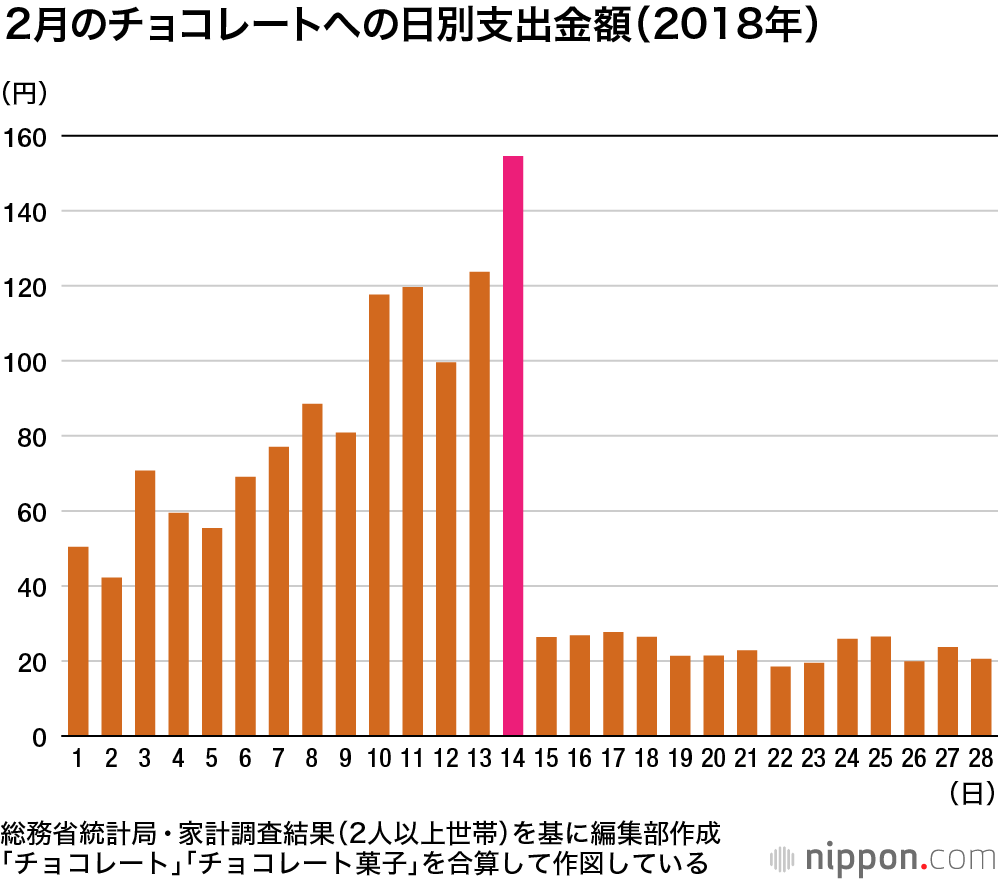 駆け込みバレンタイン、2018年は当日購入の人が多かった:チョコレートへの支出、2月は平均の倍以上