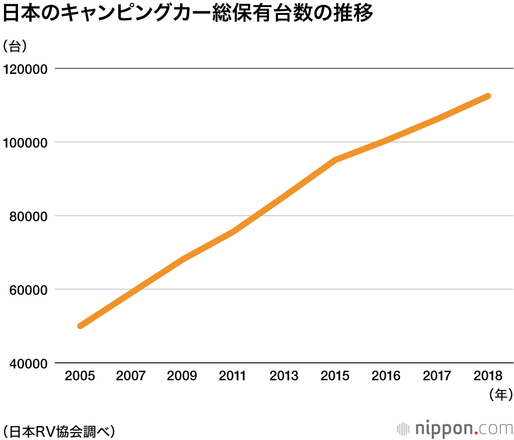 キャンピングカーの総保有台数は右肩上がり:11万台を突破