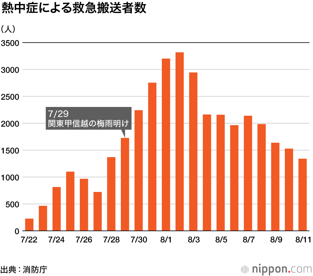 熱中症が急増、遅い梅雨明けも8月は猛暑